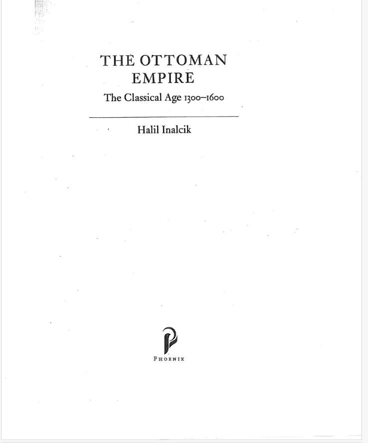 The Ottoman Empire: The Classical Age 1300-1600, Halil İnalcık, Oreon Publishing, Phoenix Press, London, 2000 & 2002 (3. ve 4. baskılar)